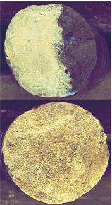 Dry cuttings fluorescent image(up) and wet cuttings fluorescent image(down)